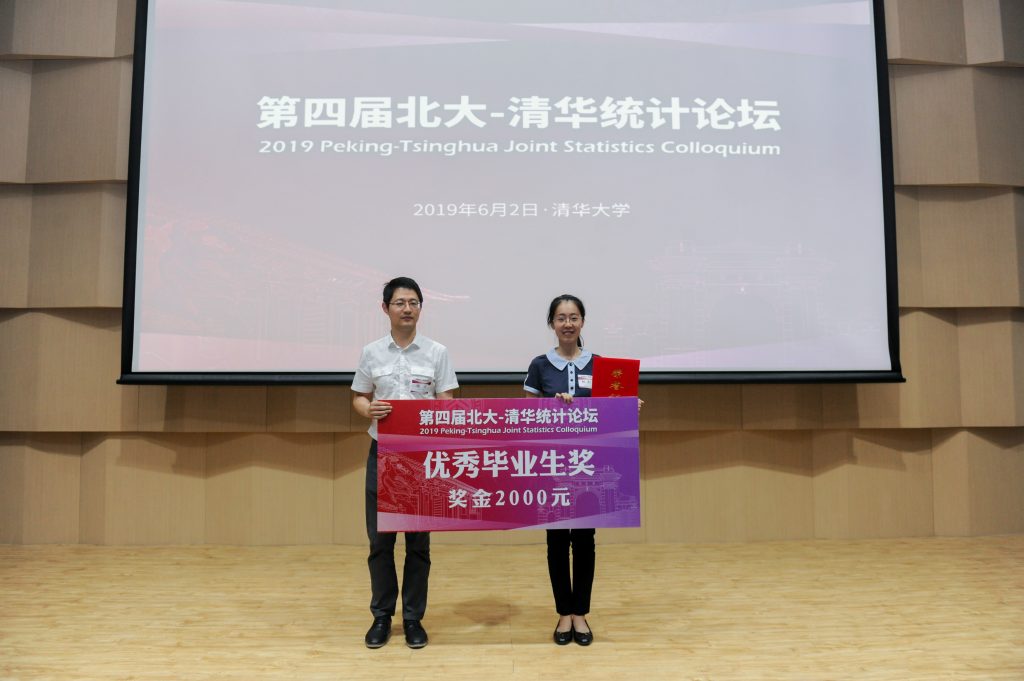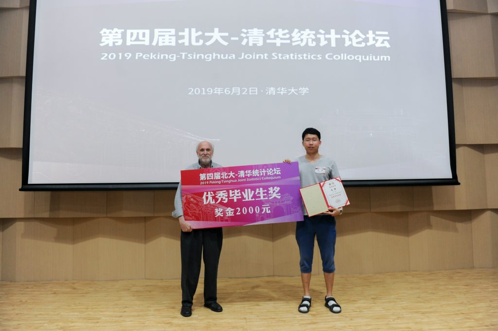 姚方教授为“第四届北大-清华统计论坛”优秀毕业生获得者——北京大学张澍一同学颁奖。