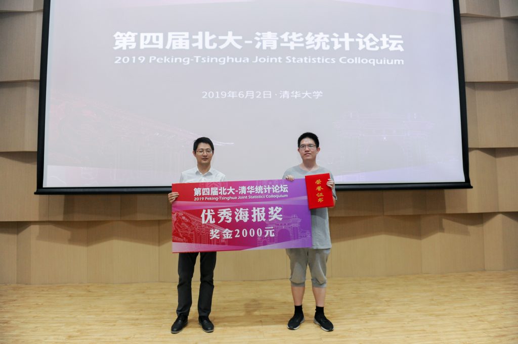 姚方教授为“第四届北大-清华统计论坛”优秀海报奖获得者——北京大学李瑞风同学颁奖。
