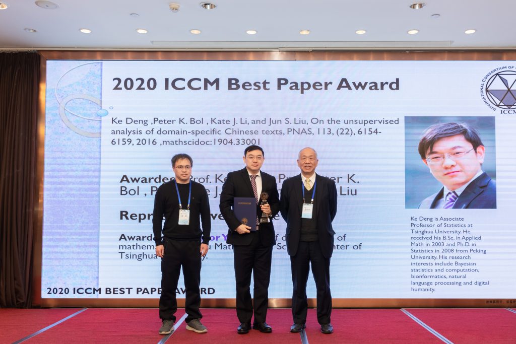 研究中心邓柯副教授作为第一作者的学术论文“On the unsupervised analysis of domain-specific Chinese texts”荣获“2020世界华人数学家联盟最佳论文奖-银奖”。该论文是邓柯副教授与美国哈佛大学Peter Bol教授、哈佛大学刘军教授和萨福克大学李佳漪副教授共同完成,论文发表于美国科学院院刊PNAS杂志。