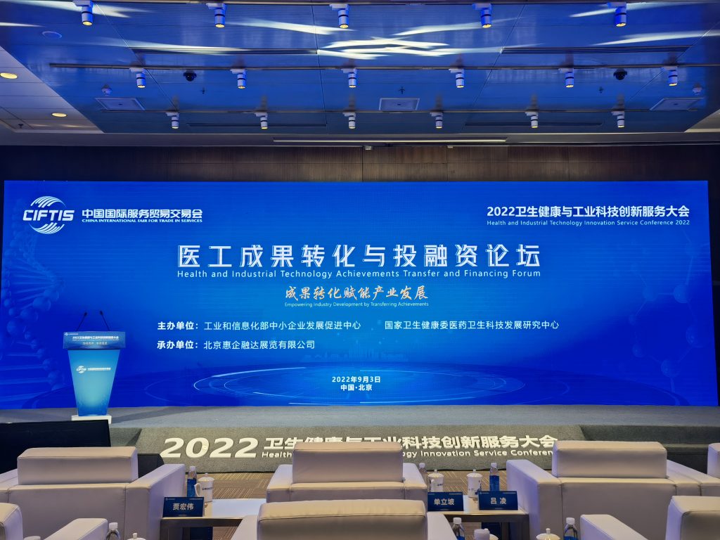 近日,2022年中国国际服务贸易交易会(以下简称“服贸会”)在北京成功举办,作为本届服贸会亮点之一的“首届卫生健康与工业科技创新服务大会”同期于国家会议中心召开。该会议由工业和信息化部、国家卫生健康委员会和北京市人民政府共同发起主办,聚焦医药创新、成果转化、医工交叉,探讨新形势下医药工业与卫生健康产业融合创新发展,展示前沿技术与创新成果,搭建跨领域、大协作的创新服务平台。