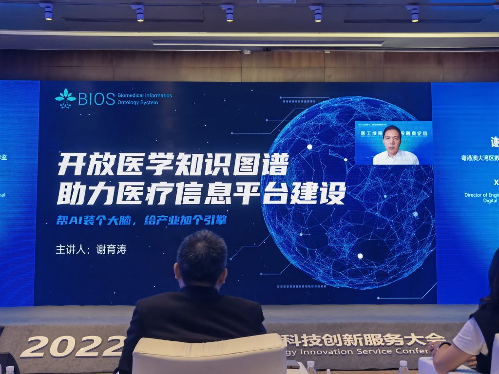 粤港澳大湾区数字经济研究院工程总监谢育涛代表研发团队进行“开放医学知识图谱助力医疗信息平台建设”的主题分享。统计中心俞声副教授作为研发团队代表现场出席论坛。BIOS不但在技术层面达到国际领先水平,更以全公开、全开放的态度助力国内医疗信息领域和AI医疗产业的发展。