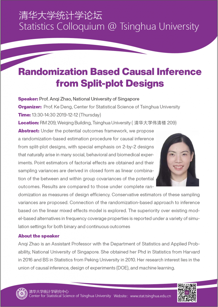【经典三级 论坛】Randomization based Causal Inference from Split-plot Designs
