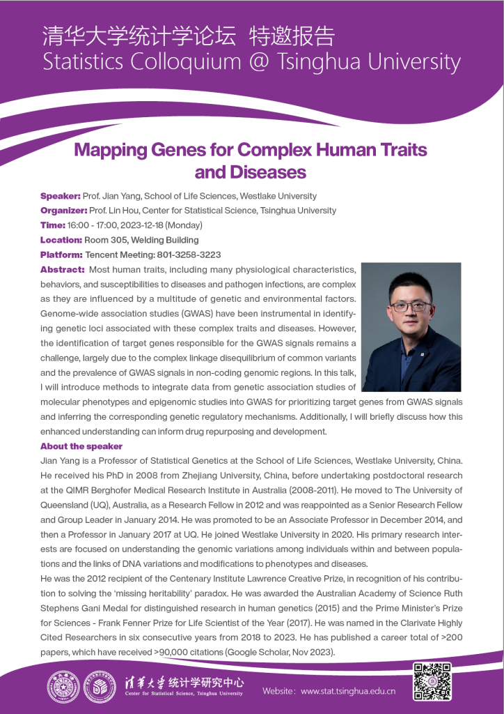 【学术活动】Mapping Genes for Complex Human Traits and Diseases