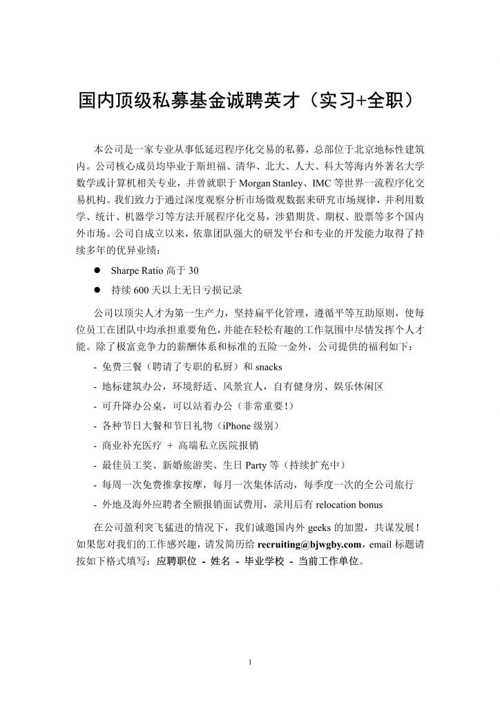 国内顶级私募基金诚聘英才