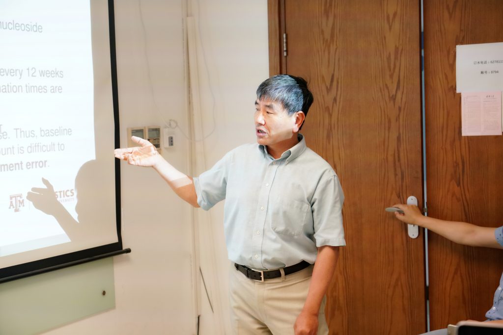 2019年5月27日德州农工大学的Suojin Wang教授访问我中心,并做学术报告,报告的题目是Analysis of Linear Transformation Models with Covariate Measurement Error and Interval Censoring.
