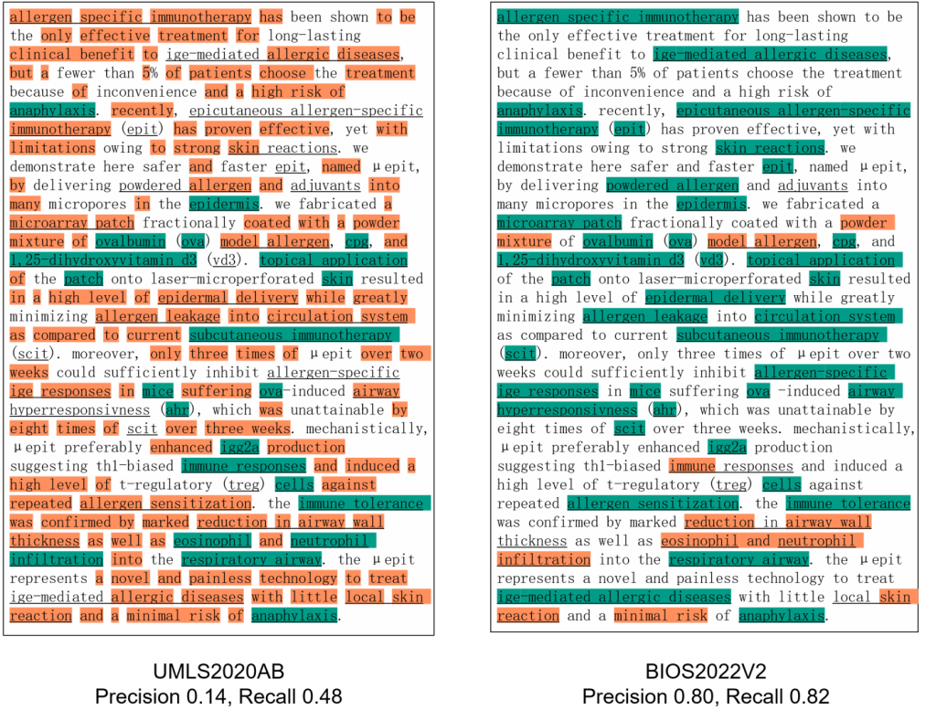 BIOS与UMLS术语覆盖度和质量对比